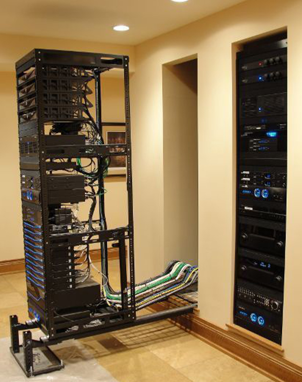 De l’équipement a l’installation, câble management ainsi que la mis en place de l’Energie renouvelable solaire et backup.